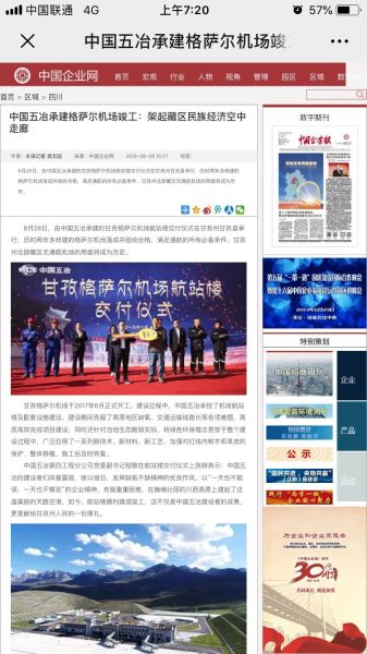 多家媒體報道中國五冶集團甘孜格薩爾機場項目落成