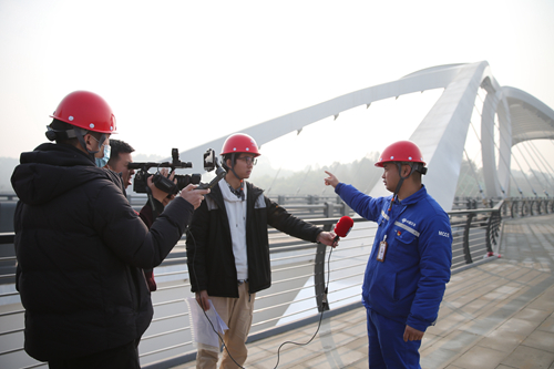 在天府新區的創意路項目,媒體記者們先“入地”后“望天”,相繼探訪了全國最大的單層多倉綜合管廊建設情況,參觀了全國首座水滴形粱拱分離系桿拱橋的獨特造型,在充滿高新技術與獨特創意的建設現場感受著中國五冶助力天府新區科學城建設的匠心。