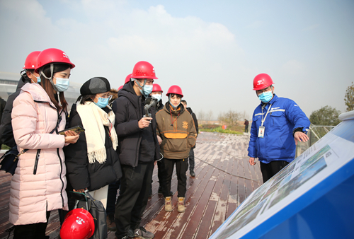 在東安湖生態公園項目,媒體朋友們參觀項目沙盤后,來到綜合示范區觀景平臺,感受中國五冶在公園城市打造中的巧思。
